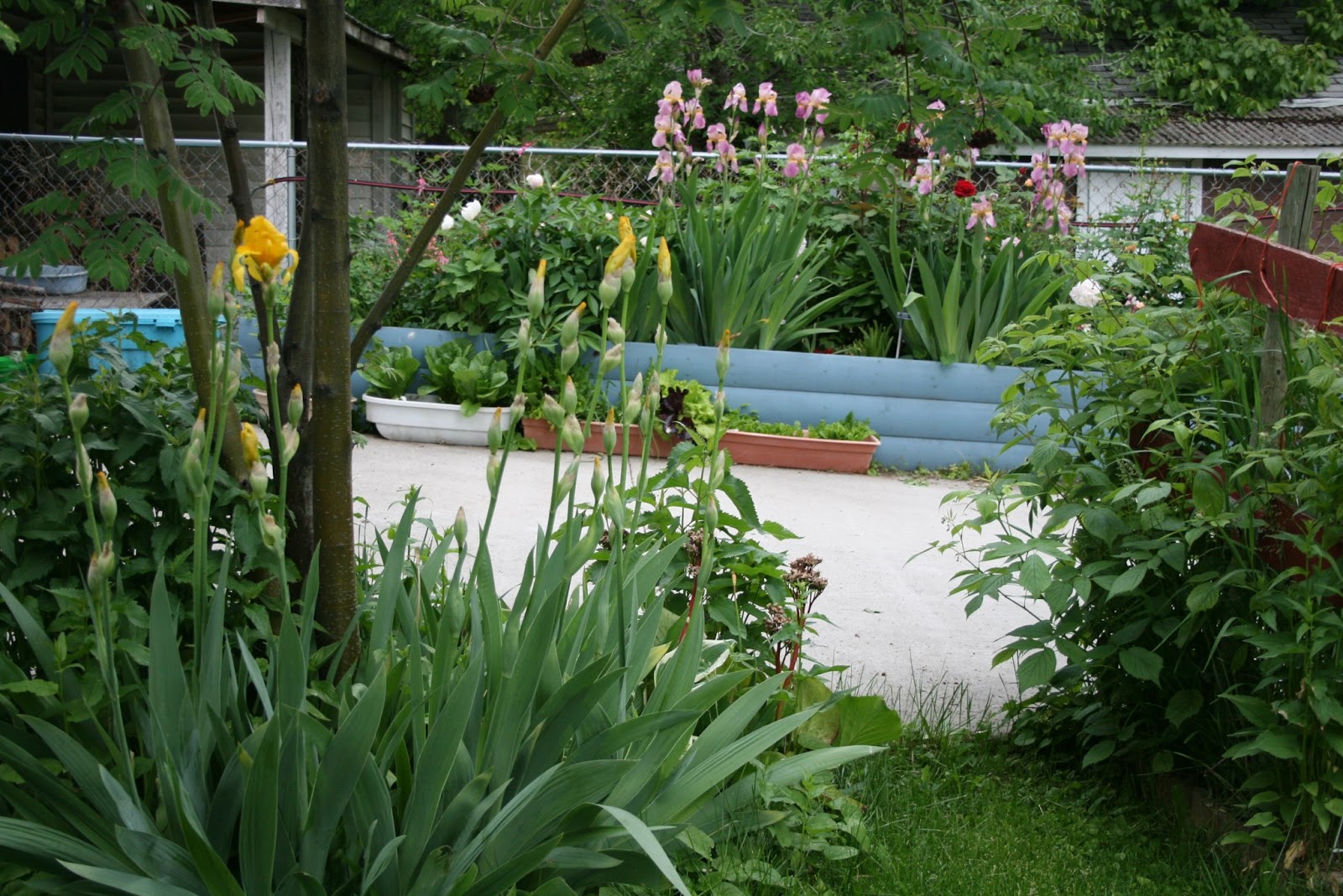 the Coral Bells, as tried and true as ever, are scattered through the raised bed