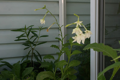 Finally, some beautifully scented potted nicotiana - fragrant in the evening, - and below, a nice spot to sit and enjoy the coolness that comes with the setting sun.